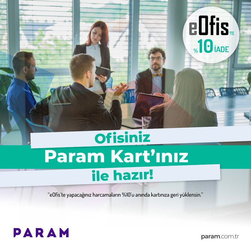 Param Planetpay Kart’ınız ile eOfis’den yapacağınız harcamalarda harcama bedelinizin %10’u Param tarafından ödemeniz sonrası anında kartınıza iade edilecektir.